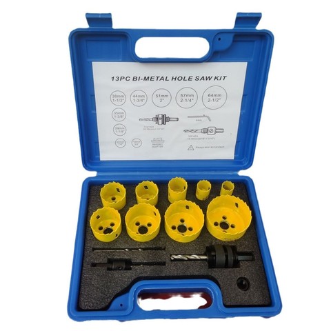 ANDUUK Juego de sierras de agujero bimetálicas HSS de 13 piezas en caja de plástico azul para metal, madera y plástico